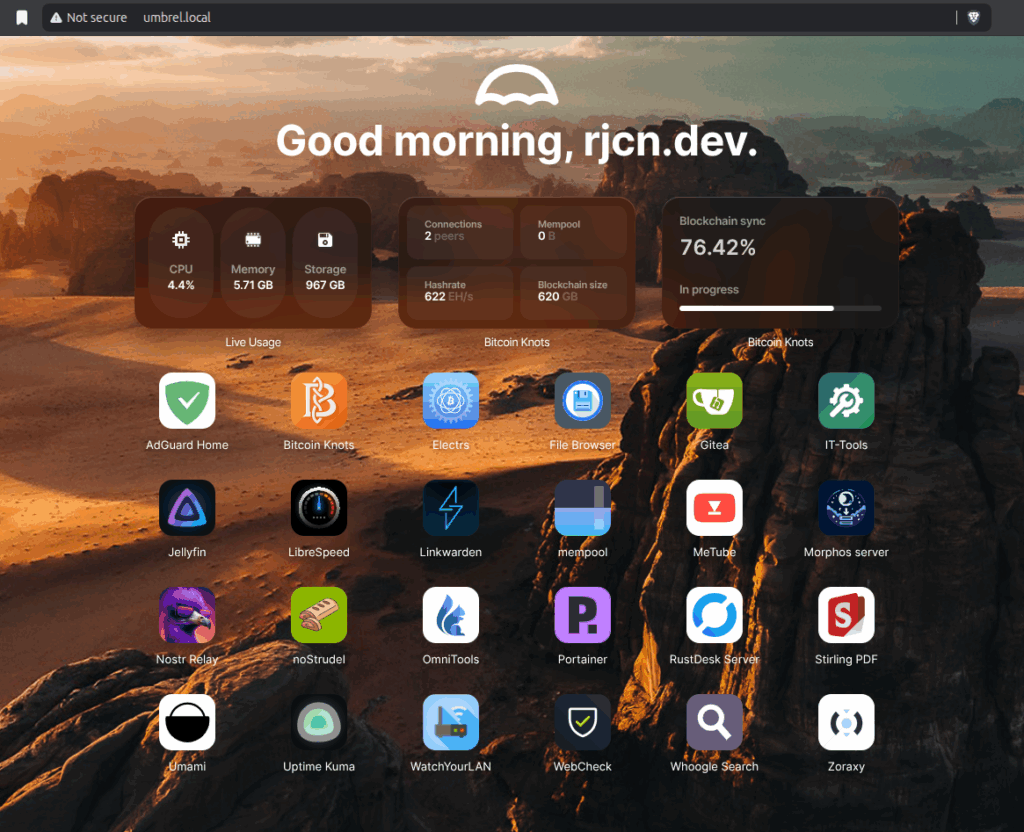 currently I’m running umbrelOS on my RaspberryPi 5 locally on my home server.